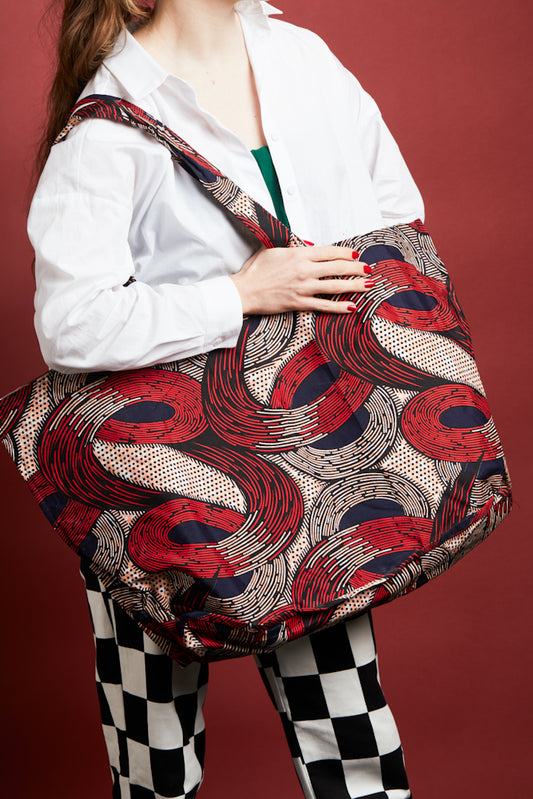 NEW- African Print Maxi Tote Bag - Red Swirls