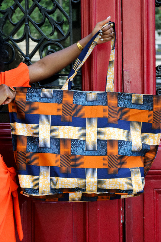 African Print Maxi Tote Bag - Orange check