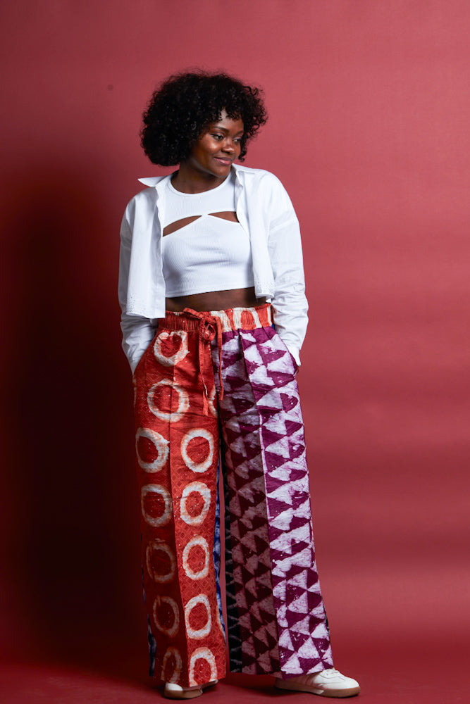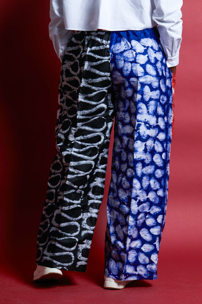 Expertly hand-dyed Adire fabric, crafted from high-quality cotton. The Adire pair of trousers is perfect for those who value comfort and unique style. It is designed to showcase traditional culture and still be suitable for everyday wear.
