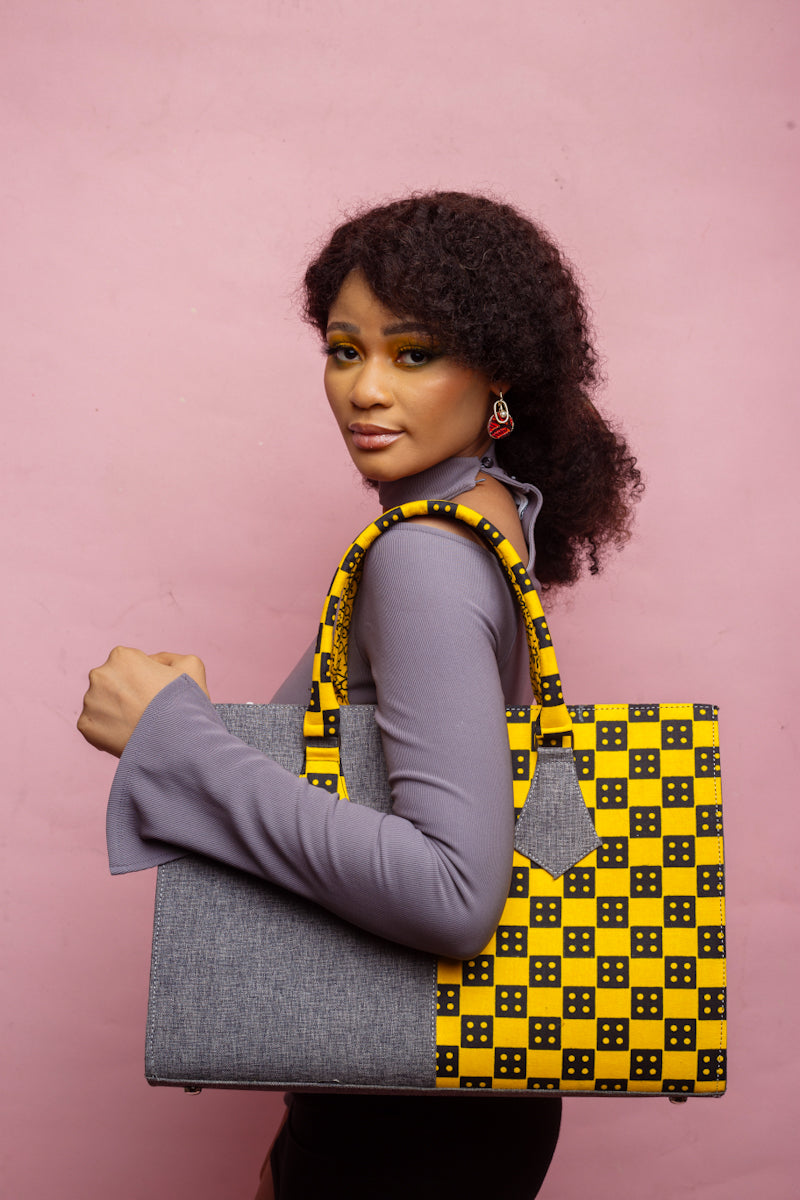 Colour: Grey Jute | Yellow and Black Ankara motifs.