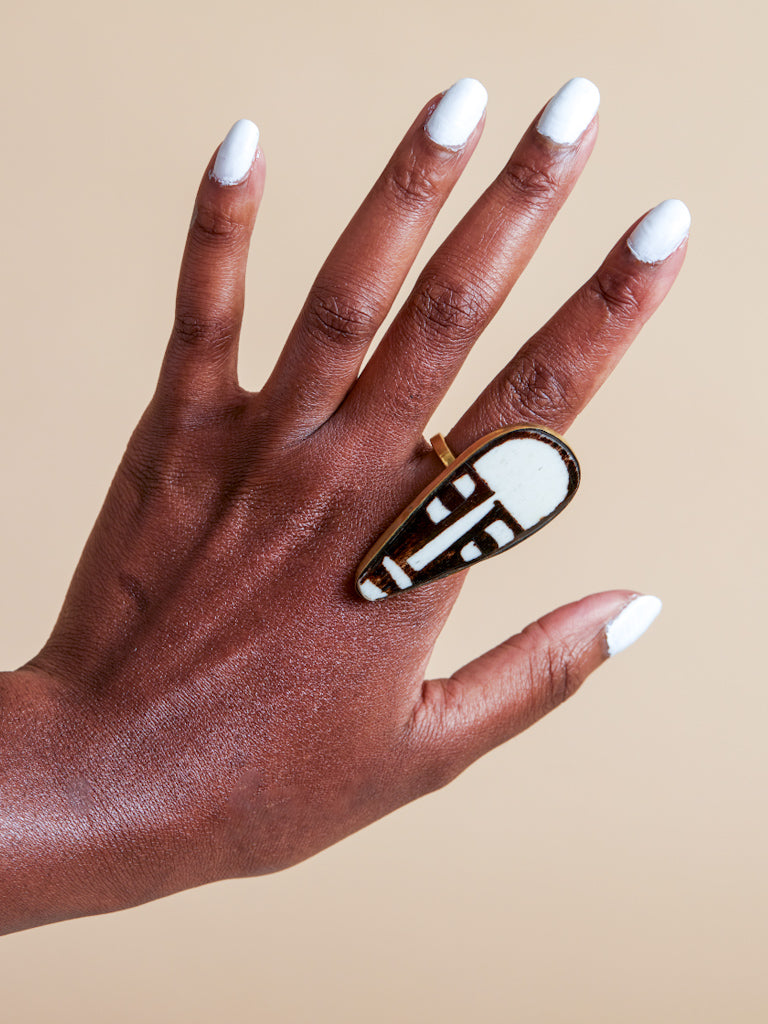 Redefining African jewellery. This handcrafted mask ring offers a contemporary interpretation of traditional artistry. Carefully made from 100% recycled brass, it reflects a balance of sustainability, craftsmanship, and modern minimalism. The sleek rectangular silhouette adds an understated yet bold statement to any look.