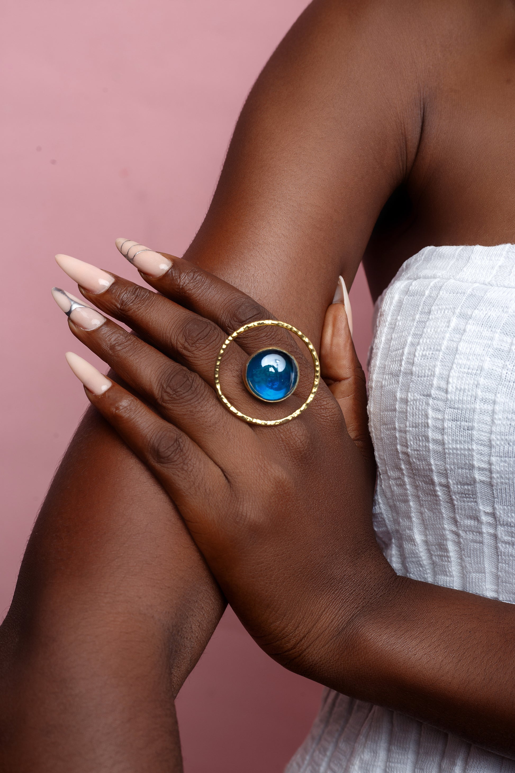 Crafted from up-cycled brass and fused glass, our Adjustable Kenyan Brass Statement Rings boast an avant-garde flair, making them the epitome of bold artistic expression. Fits M and L and are easy-to-adjust.