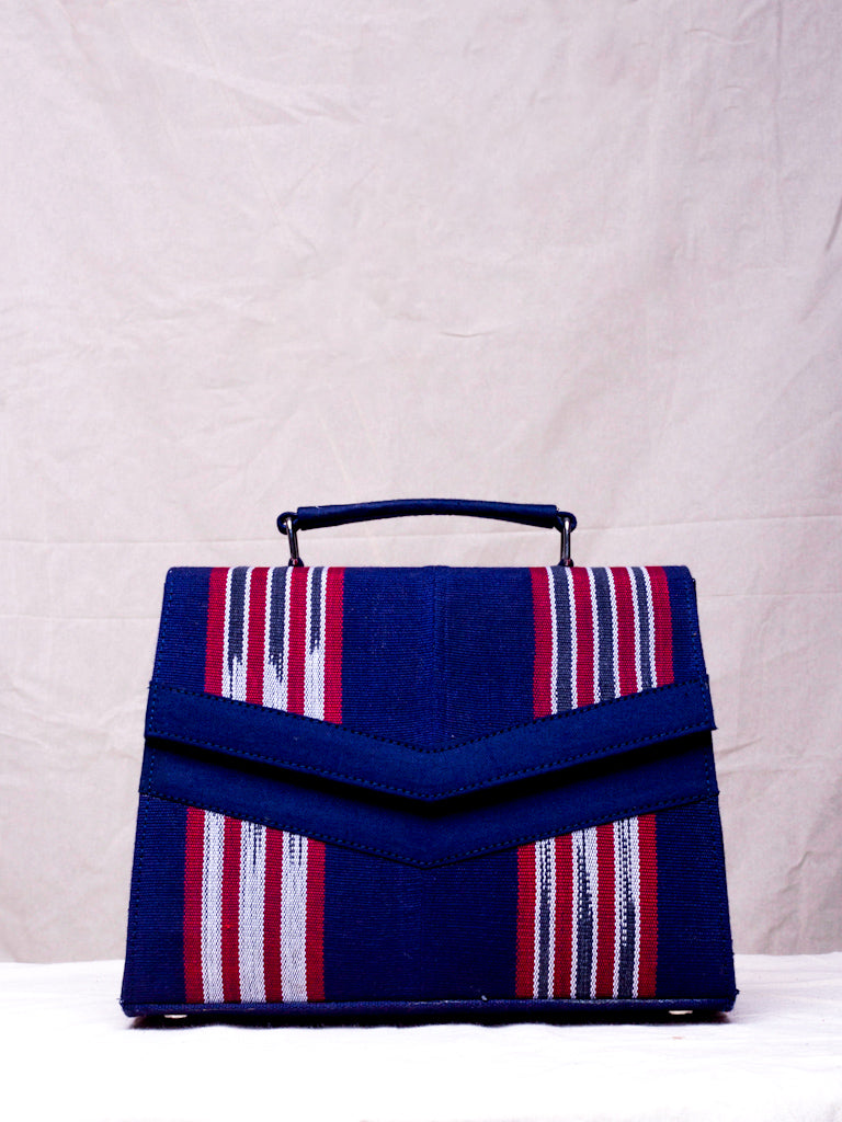 • Navy blue bag with red & white Aso oke Fabric